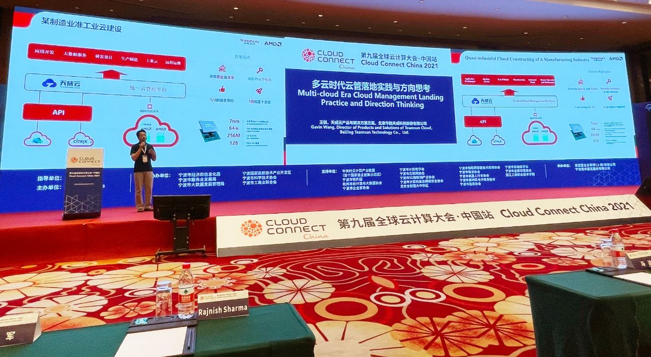From June 16 to 18, “The 9th Cloud Connect China” was held in Ningbo Pan-Pacific Hotel, with the theme of "New Technology Empowers Double-Cycle Development", which deeply discussed the development status of AI and cloud computing in the era of digital economy. Mr. Qi Wang, Director of Product and Solution of "Teamsun Cloud", was invited to attend the conference, and together with our partner AMD, delivered a speech of "Cloud Management Practice and Directional Thinking in the Multi-cloud Era of "Teamsun Cloud"" in the afternoon of June 17, sharing how Teamsun Group contributes to the digital development of cloud computing industry by using its own advantages.