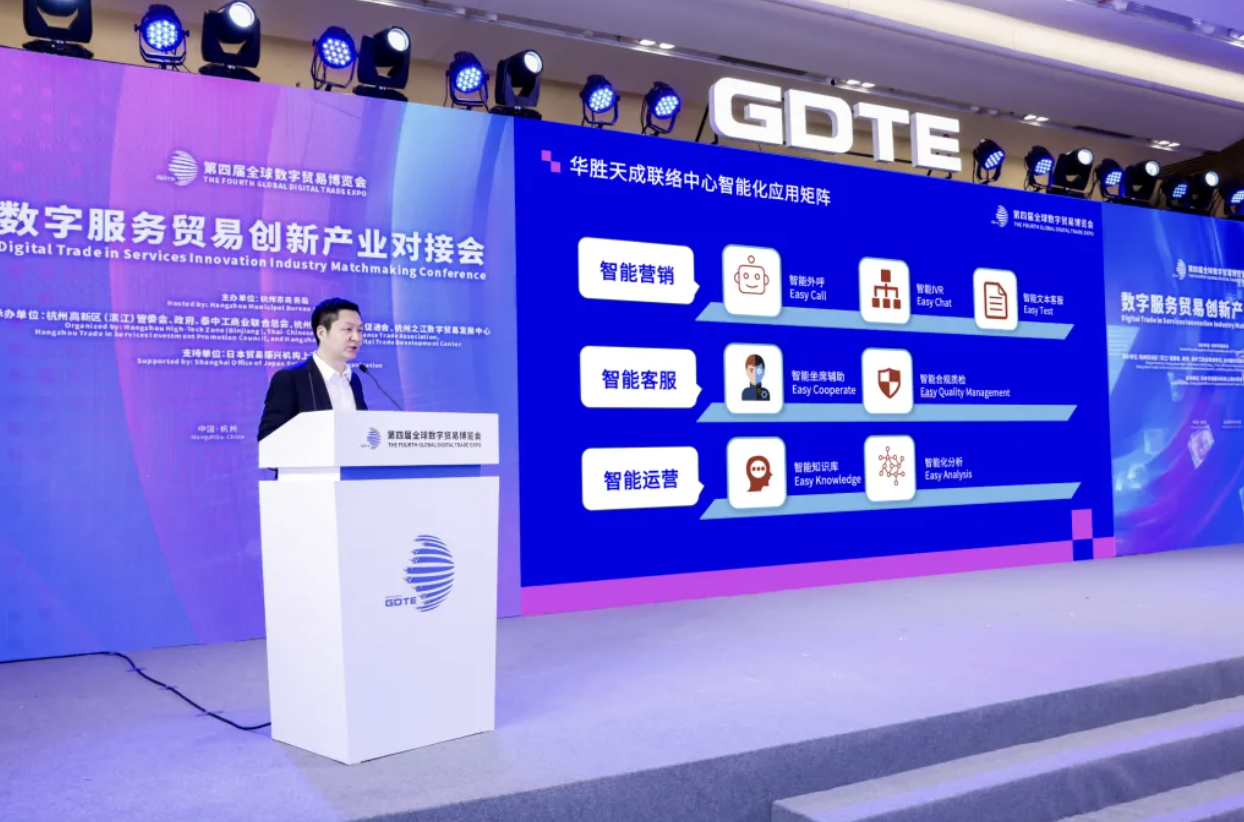 作为专注于企业级人工智能应用的AI服务提供商,华胜天成智能客服事业部总经理谭蕾蕾受邀出席,在现场发表《人工智能时代下的客户联络和客户经营》的主题演讲,深入剖析了人工智能在全球数字贸易浪潮下的应用趋势。他指出,未来AI应用将会从根本上改变我们的生活、工作和与世界互动的方式,智能客服也会是落地最广、价值突出的典型场景。依托二十余年的行业积淀,华胜天成打造了覆盖客户全旅程的智能联络中心解决方案,通过构建专业智能体集群,将大语言模型深度应用于人机交互、意图识别、工单处理、业务洞察等关键环节,实现多智能体协同运作。该方案能够协助企业的营销和服务人员,高效应对复杂的业务场景,使智能联络中心从“会打电话的机器人”真正进化为“能帮助客户解决问题的智能Agent专家”。