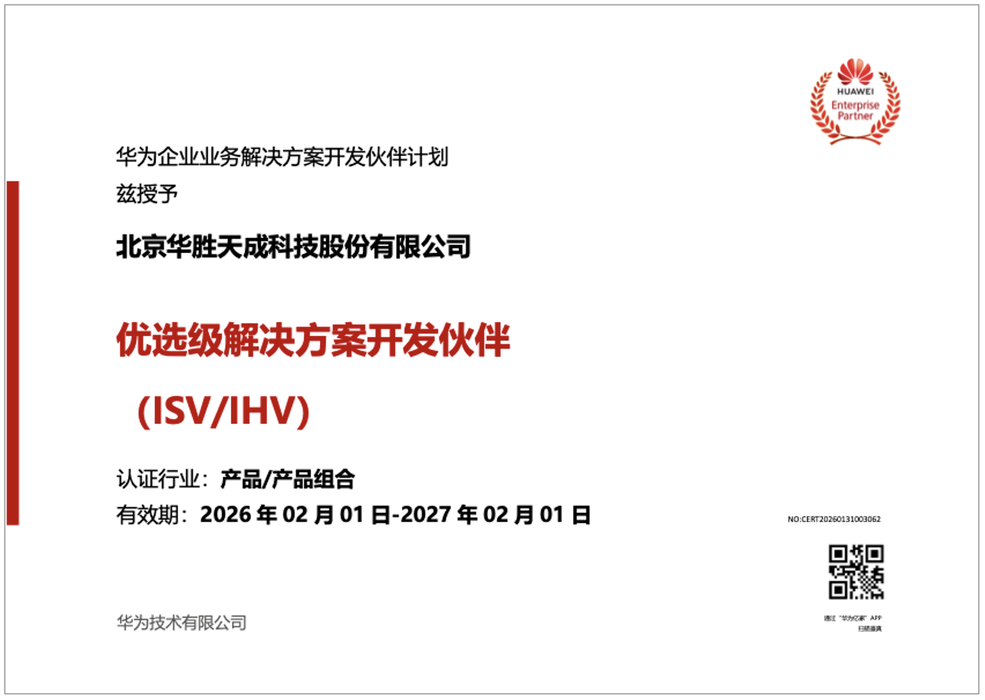 华胜天成获得华为“2026年优选级解决方案开发伙伴(ISV/IHV)”